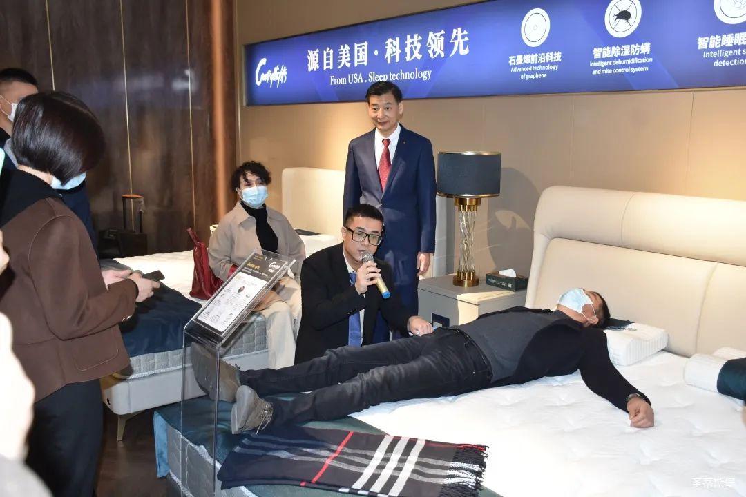 嘉宾们纷纷现场体验梦凯莎床垫的科技睡感。